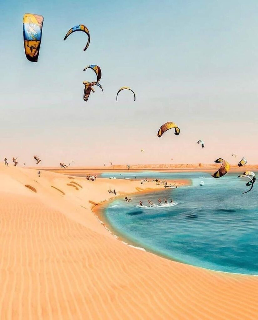 Située entre désert et océan, Dakhla est un véritable trésor du sud marocain. Sa lagune protégée est un paradis pour les amateurs de kitesurf et de sports nautiques. Ici, les dunes de sable doré rencontrent les eaux turquoise de l’Atlantique, offrant des paysages uniques et apaisants. Les visiteurs peuvent également profiter de l’hospitalité locale et découvrir une cuisine riche en saveurs. Dakhla est une destination idéale pour ceux qui cherchent à combiner aventure, détente et dépaysement total.