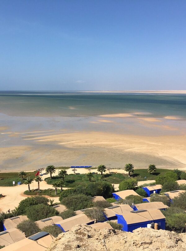 - 🌍 Un cadre naturel exceptionnel Située entre l’océan Atlantique et le désert du Sahara Lagune turquoise, dunes blanches, plages sauvages Faune rare : flamants roses, dauphins, oiseaux migrateurs